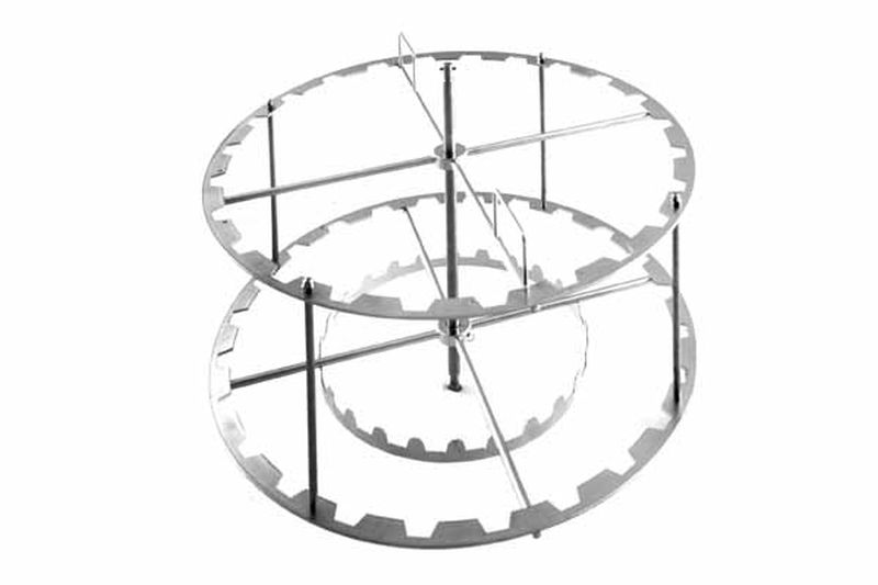 - The radial extraction basket can be converted to a tangential basket by fitting four additional hanging grids for tangential operation (Art. No. 7761). This allows extracting four large frames up to a height of 30 cm. In this configuration a cappings collection pocket (Art. No. 7758) can be used so honey drains easily from the cappings.