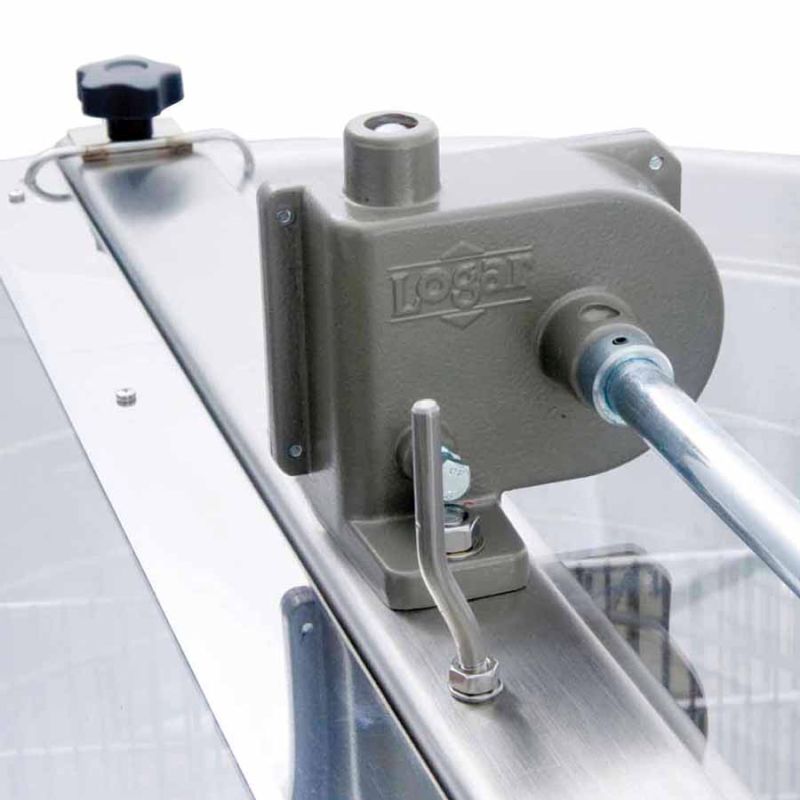 The Logar tangential extractor with hand drive (Art. No. 4001) is a compact, robust stainless-steel honey extractor, ideal for hobby and small-scale beekeepers. With space for 3 frames (full or shallow) and a drum diameter of 40 cm, it delivers reliable performance and gentle honey extraction. The stainless-steel drum (AISI 304) ensures durability and easy cleaning. The extractor is made in the EU (Slovenia) and features a practical honey tap for easy filling.
