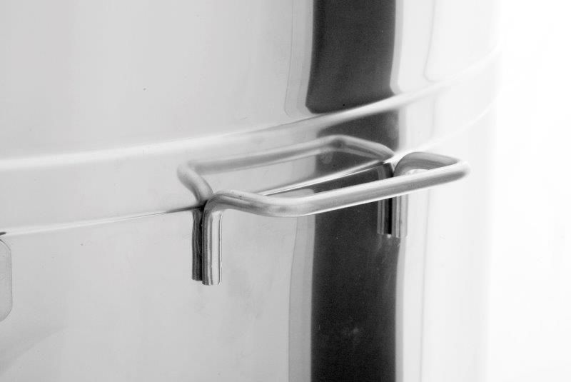 Die Honigschleuder hat einen rostfreien Quetschhahn, der am tiefst möglichen Bodenpunkt eingebaut ist, was gewährleistet, dass der gesamte Honig aus der Honigschleuder abfließen kann.