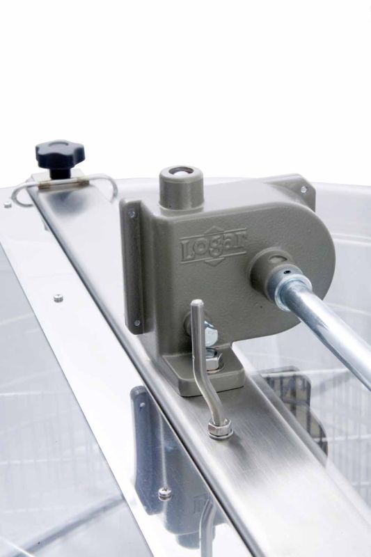 Eine Honigschleuder der Marke Logar – Synonym für Langlebigkeit, innovative Lösungen, die die Arbeit erleichtern, zuverlässigen Service und Ersatzteile.