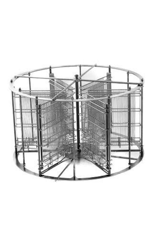 The frame baskets are made from vertical grid bars with an appropriate spacing to prevent damage to the frames during extraction. They are connected by a special mechanism. The design of the baskets prevents honey from collecting in the pockets, keeping the frames dry after extraction. Frame baskets for frames up to a height of 37 cm are available at extra cost.